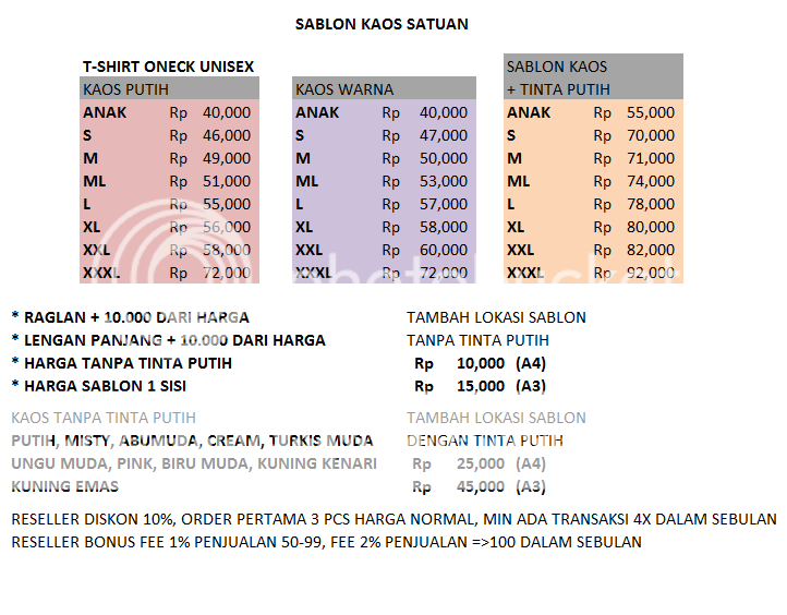 DAFTAR HARGA SABLON SATUAN | SABLON DIGITAL